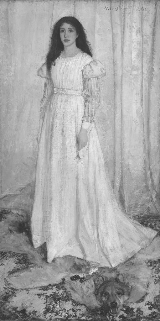 A paradigmatic example is painter James Abbott McNeill Whistler. In 1862, his work known as Woman in White (fig. 7) was rejected by the academy. One of the reasons for the scandal that followed was his disregard for perspective, which created a flat, two-dimensional scene. Critics also pointed out that it was a bad illustration of one of the most popular books of the time, Wilkie Collins’s proto-mystery novel The Woman in White (1859). Whistler responded that he was not interested in illustrating a book he had never read and that the coincidence between the titles was the gallery’s responsibility. He had simply tried to paint a girl dressed in white in front of a curtain. He named the painting Symphony in White No. 1 to underscore his formal intentions.5