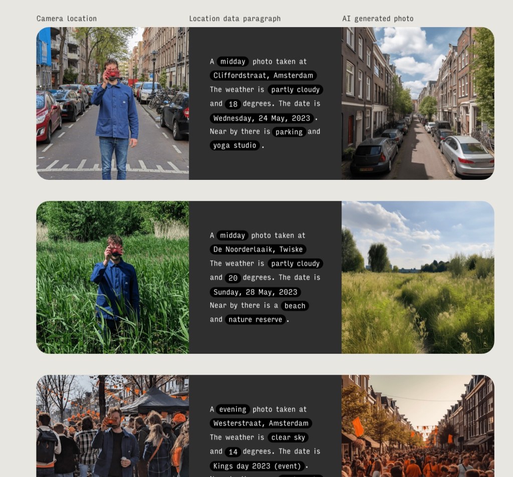 Paragraphica is a device developed by Bjørn Karmann. Resembling a photographic camera, it doesn’t have a lens. It’s a context-to-image camera: it gathers online data about its location and feeds it to an AI to create pictures.